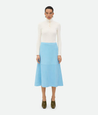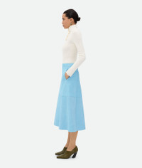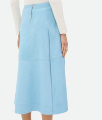 Midi skirt in full grain suede. Product Details - Full grain suede leather midi skirt - Zip closure - Unlined - Material: 100% lambskin - Color: Pale Blue - Made in: Italy - Product code: 798890V4LG08955 Size & Fit - Model is 179 cm | 5'10" and is wearing a Bottega Veneta size 38