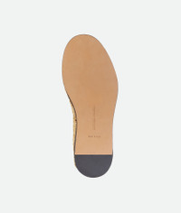 Slipper realised in raffia with all-over Intrecciato pattern and leather piping. Product Details - Raffia slipper with leather trims - Intrecciato pattern - Material: Raffia - Lining: Lambskin - Color: Natural/Fondant - Leather outsole - Made in: Italy - Product code: 796458V4EU19221