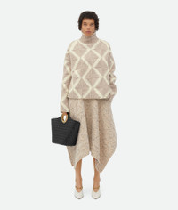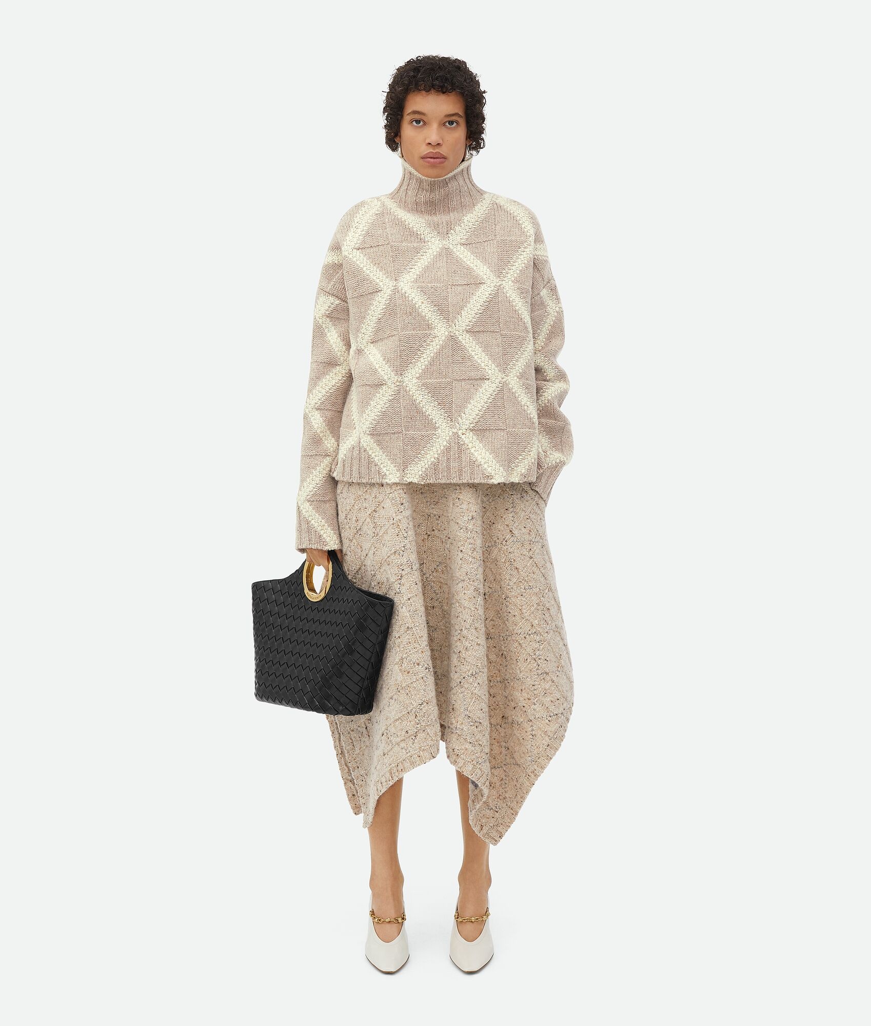 Intarsia jumper in soft wool argyle. Product Details - Wool argyle intarsia jumper - Turtleneck - Relaxed fit - Material: 100% Wool - Color: Desert Mel/Soapstone - Made in: Italy - Product code: 791573V4DY09761 Size & Fit - Model is 179 cm | 5'10" and is wearing a Bottega Veneta size S