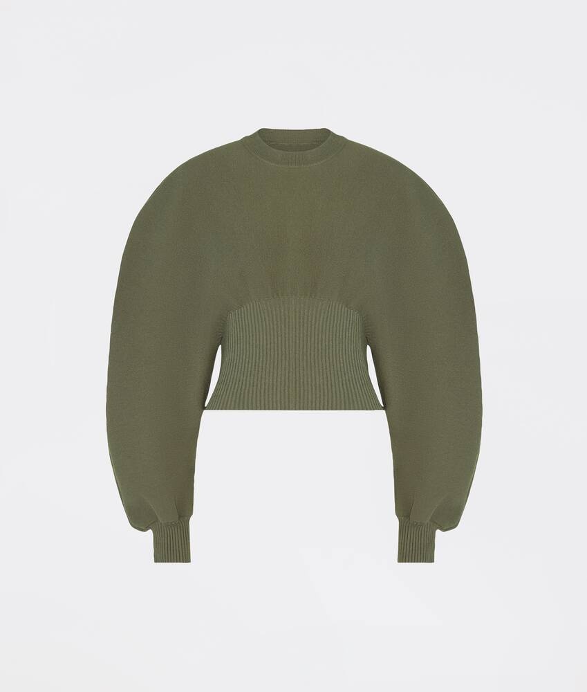 • Compact stretch wool sweater • Relaxed fit Material: 64% Wool, 23% Polyamide, 11% Polyester, 2% Elastane • Color: Crocodile Made in: italy