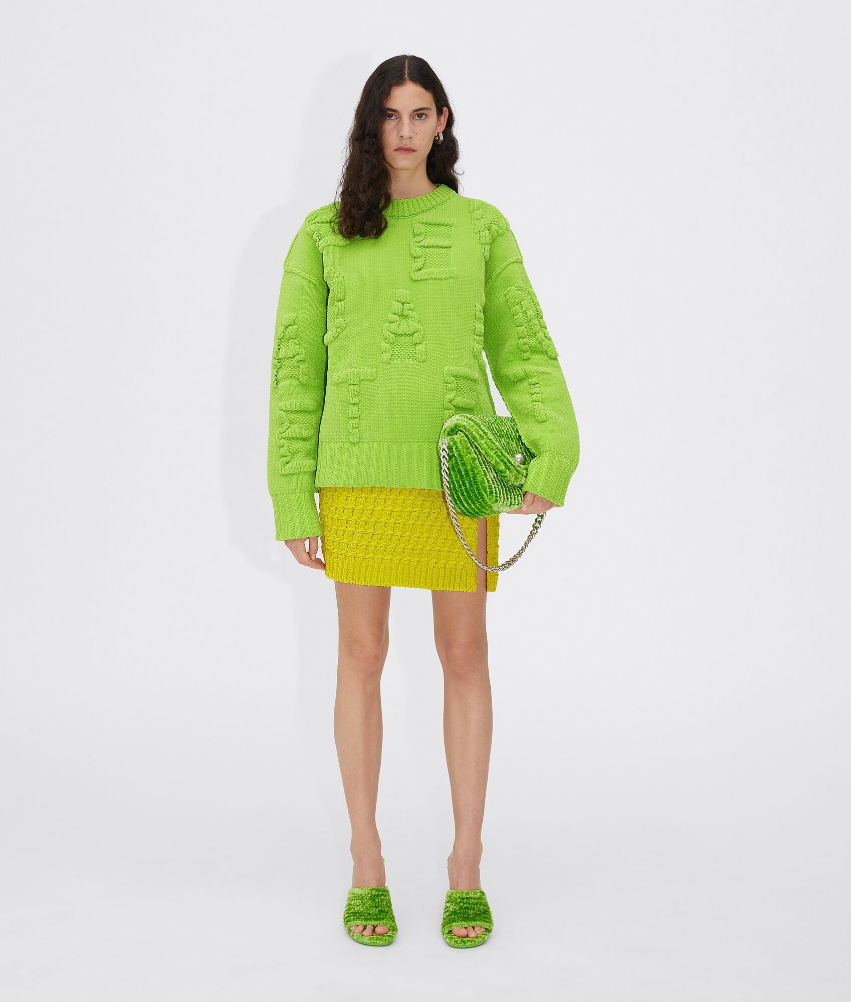 • Heavyweight chenille sweater • All-over knitted "Bottega Veneta" embossing • Relaxed fit Material: 99% Polyamide, 1% Elastane • Color: Caterpillar Made in: italy