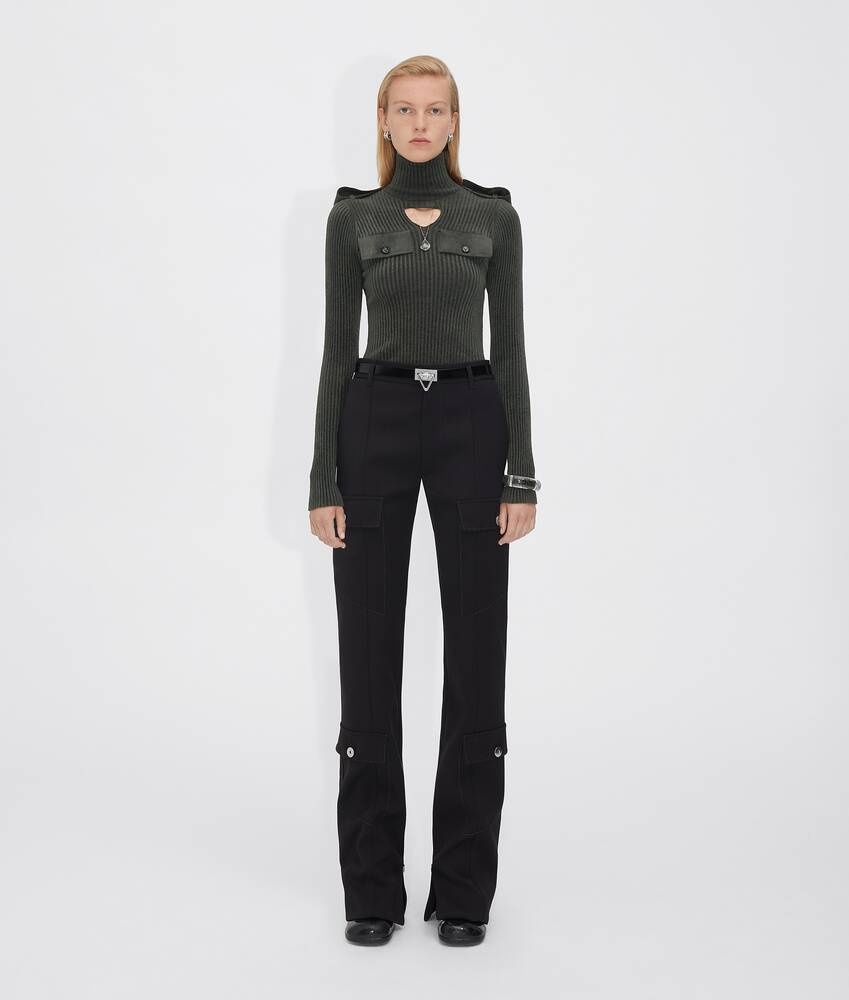 • Lightweight ribbed velvet sweater • Slim fit Material: 58% Viscose, 40% Polyamide, 2% Elastane • Color: Dark Green Made in: italy