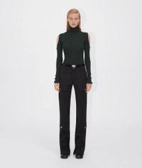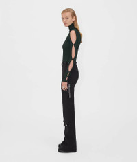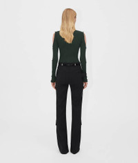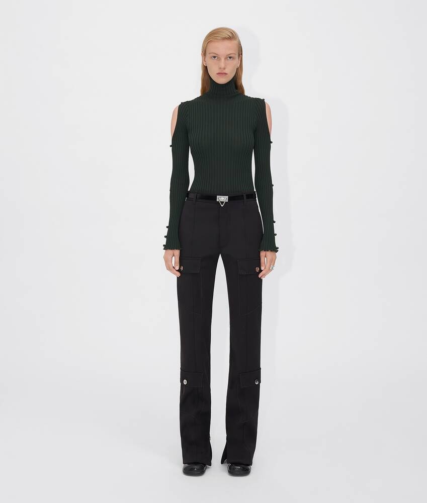• Lightweight ribbed sweater • Slits on the sleeve with round trim details • Slim fit Material: 77% Viscose, 21% Polyamide, 2% Elastane • Color: Dark Green Made in: italy