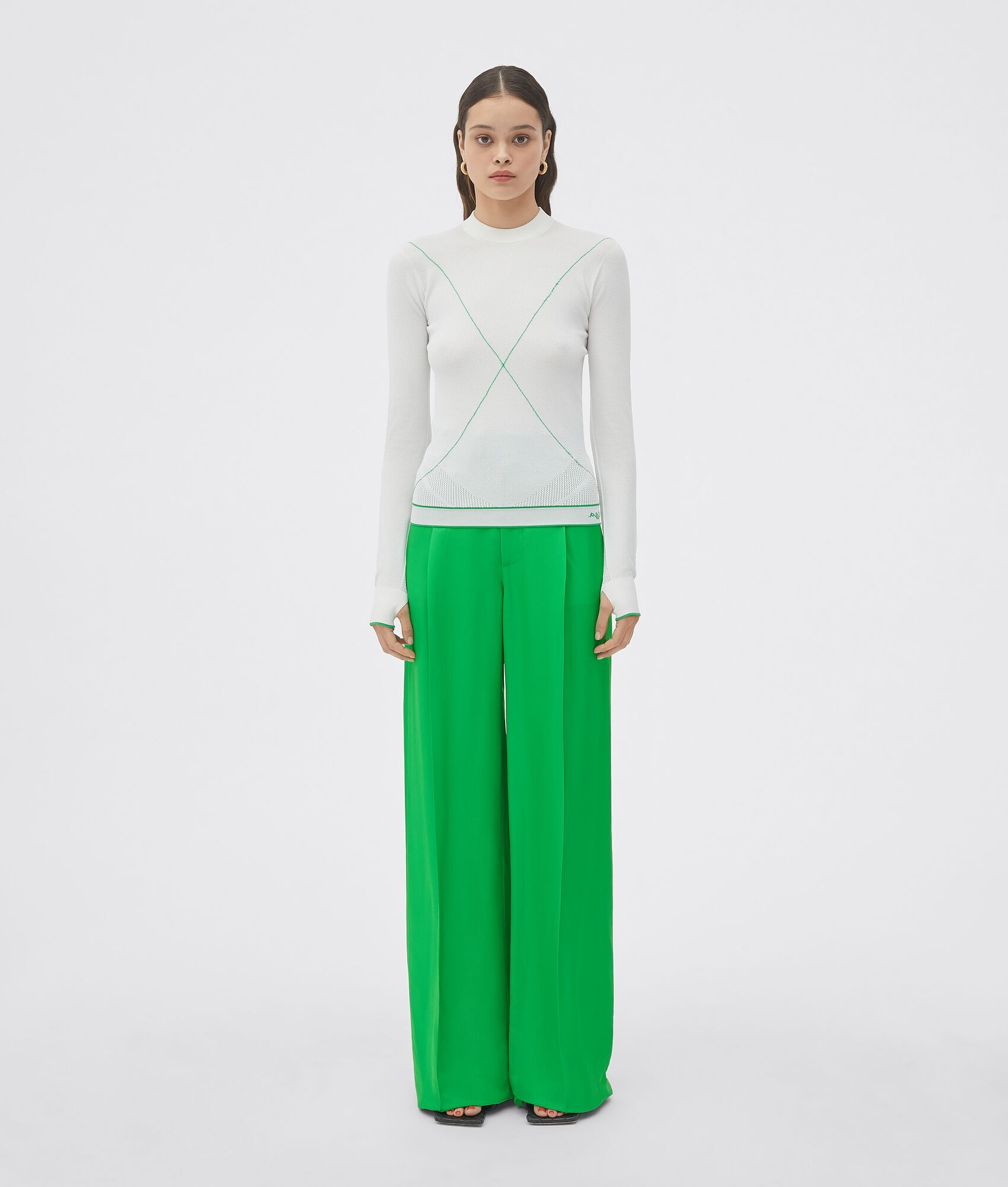 • Lightweight viscose sweater • Contrasting parakeet stitching and hem with reverse logo • Slim fit Material: 83% Viscose, 17% Polyester • Color: White Made in: italy