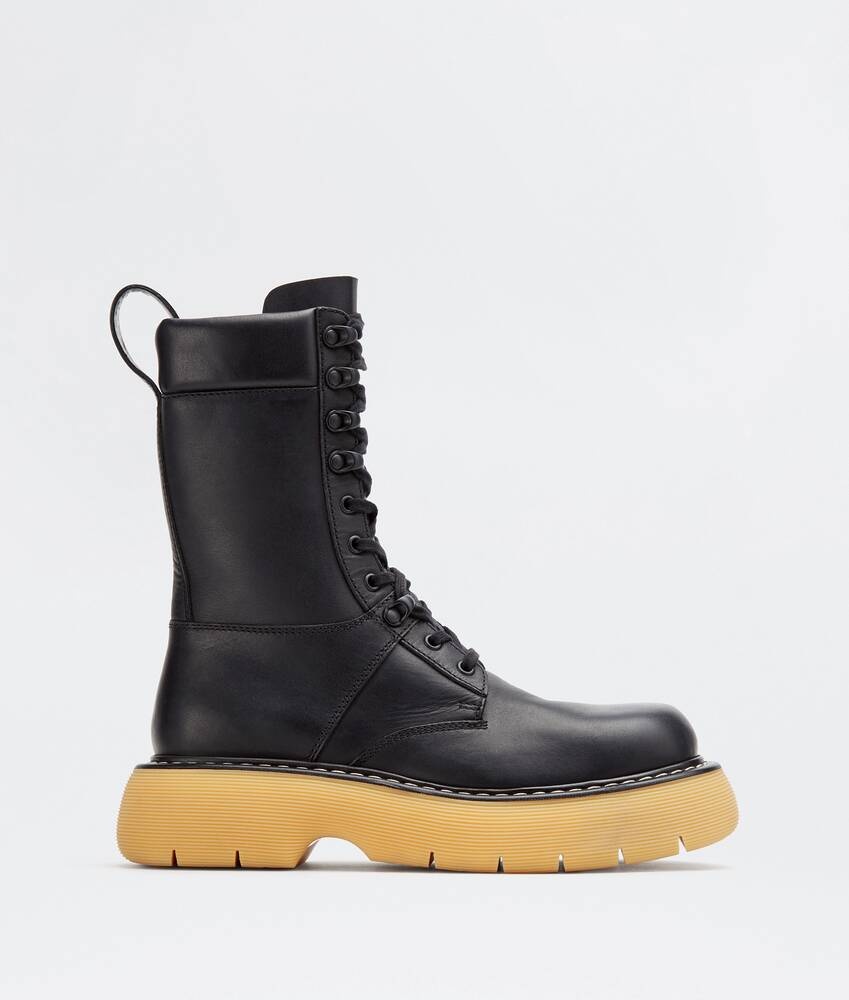 • Brushed leather lace-up boots Material: 100% Calfskin • Lining: Calfskin • Color: Black/Natural Rubber • Rubber outsole • Flatform: 3.5 cm | 1.4" Made in: italy
