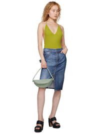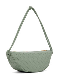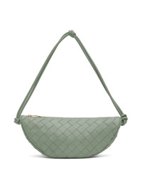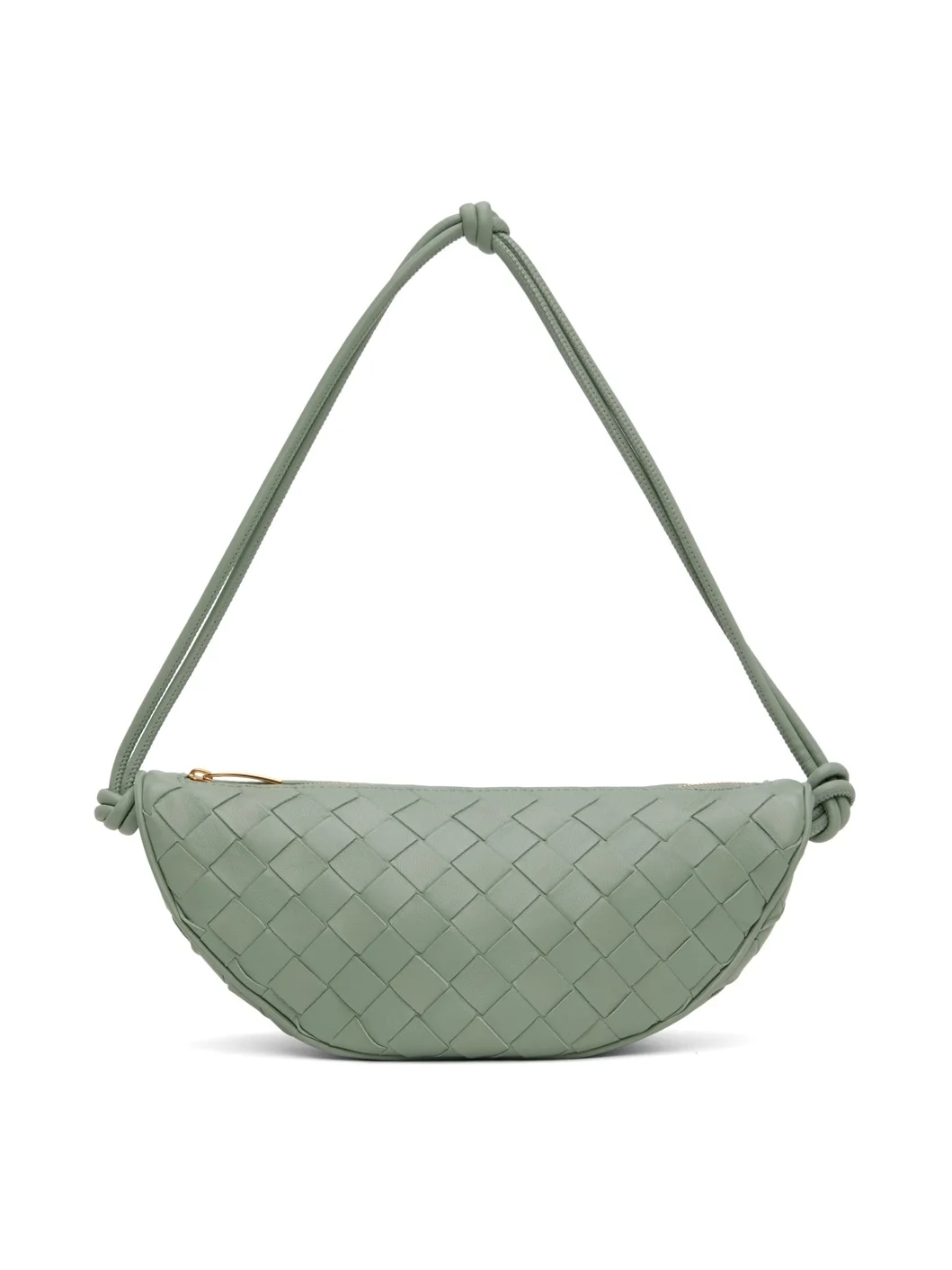 Intrecciato-woven grained calfskin shoulder bag in green. · Knotted accent at fixed rolled carry handle · Zip closure · Patch pocket at interior · Grained calfskin lining · Gold-tone hardware · H4 x W10 x D4 in Supplier color: New sauge/Gold Calfskin. Made in Italy 231798F048042