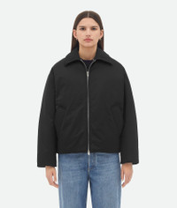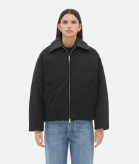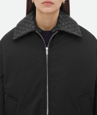 Puffer jacket in cotton twill with detachable Intrecciato leather collar. Product Details - Cotton twill puffer jacket - Detachable Intrecciato leather collar - Zip closure - Lined in cotton twill - Regular fit - Material: 100% polyamide - Color: Black - Made in: Italy - Product code: 809558VF4K01000 Size & Fit - Model is 177 cm | 5'9" and is wearing a Bottega Veneta size S
