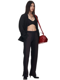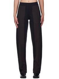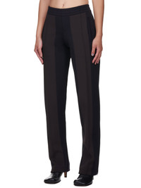 Bottega Veneta trousers in biscotto, elasticized waistband, slash hand pockets, brown front bands down legs, raised seam details, zip closure at ankles, straight/finished hem, tonal stitching. Made in Italy. Standard S-L sizing. Composition - 51% Viscose, 43% Polyester, 5% Polyamide, 1% Elastane. Model is 5ft 8” and wearing a size S. Bust: 34” Waist: 24” Hip: 33"