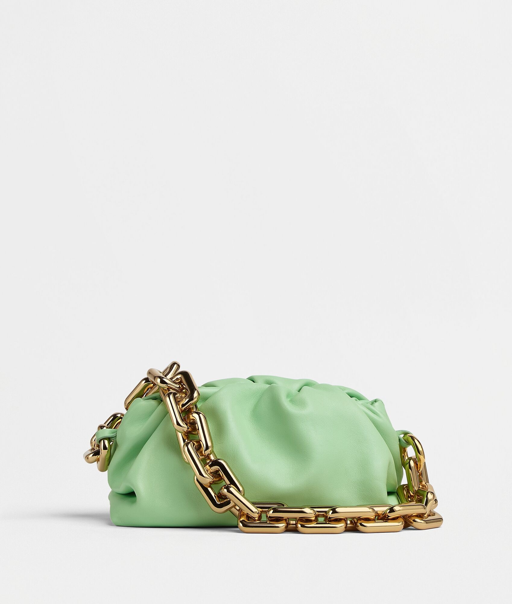 • Teen leather clutch with chain • Single compartment • Snap closure Material: 100% Calfskin • Lining: Calfskin • Color: Wasabi • Hardware: Gold finish • Height: 10 cm | 3.9" • Width: 28 cm | 11" • Depth: 14 cm | 5.5" • Strap drop: 25 cm | 9.8" Made in: italy