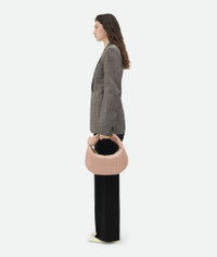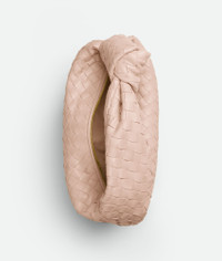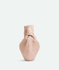 Shoulder bag in lambskin leather with soft rounded shape and signature knot made Product details • Teen intrecciato leather shoulder bag • Single compartment • Zip closure Material: 100% Lambskin • Lining: Calfskin • Color: Lotus • Hardware: Gold finish • Height: 21 cm | 8.3" • Width: 36 cm | 14.2" • Depth: 13 cm | 5.1" • Handle drop: 18 cm | 7.1" Made in: Italy