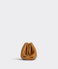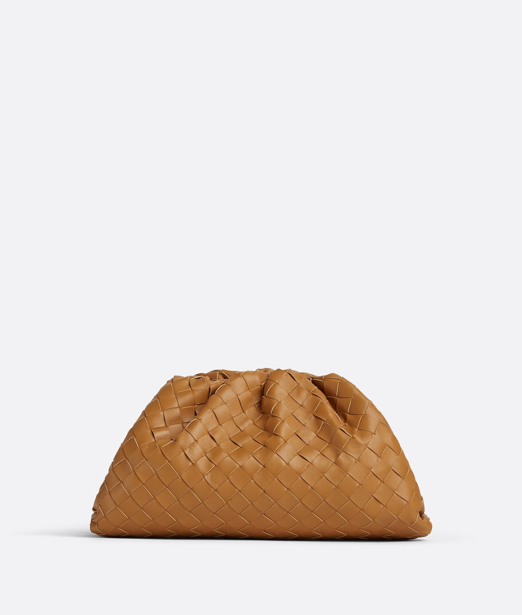 Teen intrecciato leather clutch. This bag is eligible for Certificate of Craft. Product details • Teen intrecciato leather clutch • Single compartment • Magnetic frame closure Material: 100% Lambskin • Lining: Lambskin • Color: Caramel • Hardware: Gold finish • Height: 16 cm | 6.3" • Width: 31 cm | 12.2" • Depth: 13 cm | 5.1" Made in: Italy