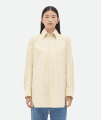 Shirt realised in cotton with a criss cross surface developed for the house. Product details • Textured criss-cross cotton shirt • Button closure • Relaxed fit Material: 84% Cotton, 15% Viscose, 1% Polyester • Color: Dove/Black Made in: Italy Size & fit • Model is 180 cm | 5'11" and is wearing a Bottega Veneta size 38