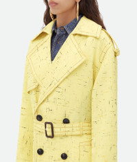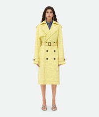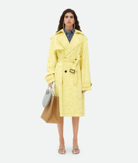 Trench realised in a textured silk blend developed exclusively for the house. Features Product details • Textured criss-cross viscose silk trench coat • Button and belt closure • Unlined • Relaxed fit Material: 63% Viscose, 36% Silk, 1% Polyester • Color: Pineapple/Black Made in: Italy Size & fit • Model is 176 cm | 5'9" and is wearing a Bottega Veneta size 38