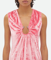 Midi dress featuring signature knot detail with metal ring. Realised in viscose velvet Product details • Textured viscose and silk midi dress • Knot detail with metal ring • Zipper closure • Unlined • Regular fit Material: 85% Viscose, 15% Silk • Color: Pink Lemonade Made in: Italy Size & fit • Model is 178 cm | 5'10" and is wearing a Bottega Veneta size 38