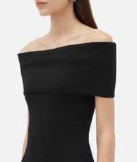 Off-the-shoulder midi dress in textured technical nylon. Product Details - Textured nylon off-the-shoulder midi dress - Slim fit - Material: Polyamide, Elastan - Color: Black - Made in: Italy - Product code: 791315V40F01000 Size & Fit - Model is 177 cm | 5'9" and is wearing a Bottega Veneta size 38