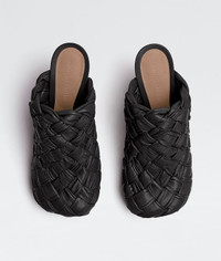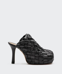• Mules in shiny Intrecciato Nappa leather • Bulky squared toe • Platform sole and lacquered stiletto heel • Bulky rounded toe • Slip on • Nappa leather lining • Leather outsole with nubuk finish DETAILS Composition: 100% Lambskin Color: Black Heel: 10.5 cm / 4.1" Platform: 2.5 cm / 1" Made in Italy