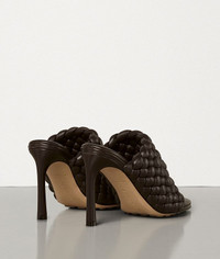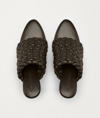 • Mules with padded Nappa Lamb Intrecciato straps • Elongated almond toe shape • Padded insole • Stiletto heel • Rubber-injected leather sole for comfort and stability DETAILS Composition: 100% Lambskin Color: Fondant Heel height: 9.5 cm | 3.7" Made in Italy