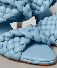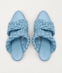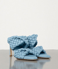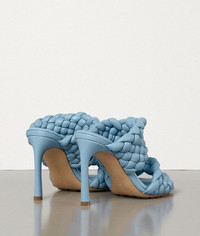 • Mules with padded and twisted Intrecciato leather straps • Curved toe • Stiletto heel • Rubber-injected leather sole for comfort and stability DETAILS Composition: 100% Lambskin Color: Ice Heel height: 9.5 cm | 3.7” Made in Italy