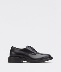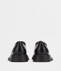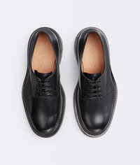 • Brushed Calf leather lace-ups • Round toe • Exaggerated rubber welt with visible stitching • Rubber outsole DETAILS Composition: 100% Calfskin Color: Black Lining color: Biscotto Made in Italy