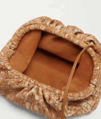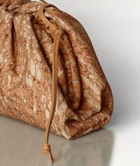 Soft voluminous clutch in natural cork • Magnetic frame covered in folds of natural cork • Single compartment lined in calfskin • Slim leather shoulder strap • Smaller style of the Pouch, a brand icon that reflects Bottega Veneta’s heritage with a modern attitude DETAILS Composition: 40% Calfskin, 20% Polyester, 20% Cork, 10% Polyurethane, 10% Cotton Color: Natural Hardware Gold tone Height: 13 cm | 5.1” Width: 22 cm | 8.6” Depth: 5 cm | 1.9”