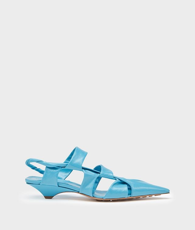 • Slingback shoes in shiny Nappa leather • Elongated pointed toe • Flat, twisted straps • Upper crafted from a single piece of leather • Leather covered heel • Rubber-injected leather outsole • Nappa leather lining DETAILS Composition: 100% Lambskin Color: Sky Blue Heel: 3 cm / 1.2" Made in Italy