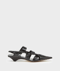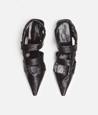 • Slingback shoes in shiny Nappa leather • Elongated pointed toe • Flat, twisted straps • Upper crafted from a single piece of leather • Leather covered heel • Rubber-injected leather outsole • Nappa leather lining DETAILS Composition: 100% Lambskin Color: Black Heel: 3 cm / 1.2" Made in Italy