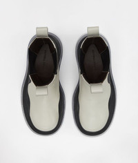 • Mid-Calf Chelsea boot with a chunky tread sole • Wavy rubber detailing • Pull-on style with elastic side panels and back loop • Bulky rounded toe • Vegetable tanned Calf leather upper • Rubber stamped outsole with opaque texture • 5.5cm / 2.2" flatform • Calf leather lining • Fits large to size, take a full size smaller than normal DETAILS Composition: 100% Calfskin Color: Wax, Black, Transparent Flatform: 5.5 cm / 2.2" Fits large to size, take a full size smaller than normal Made in Italy