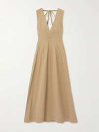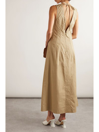 The models in Bottega Veneta’s Spring ' 24 show journeyed along a tiled floor painted with oceans and continents representing the collection’s global influences. Embracing the nomadic spirit, this maxi dress is cut from a cotton-blend in an A-line silhouette with an open back. Hidden corset boning adds subtle structure. Details & Care - Beige cotton-blend - Tie and concealed zip fastening at back - 67% cotton, 25% viscose, 8% polyester - Designer color: Sand