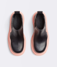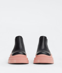 • Vegetable-tanned leather cropped Chelsea boots Material: 100% Calfskin • Lining: Calfskin • Color: Black/Peachy • Rubber outsole • Flatform: 5.5 cm | 2.2" • Fits large, take one size smaller Made in: italy