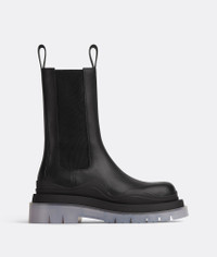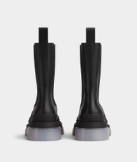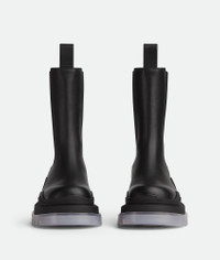 Vegetally-tanned leather Chelsea boots. Product details • Vegetally-tanned leather Chelsea boots Material: 100% Calfskin • Lining: Calfskin • Color: Black/Transparent • Rubber outsole • Flatform: 5.5 cm | 2.2" • We recommend to take half a size down Made in: Italy