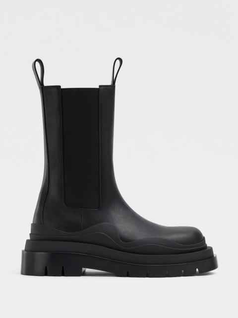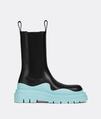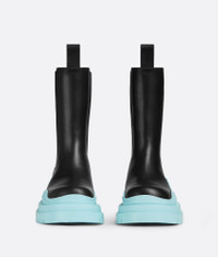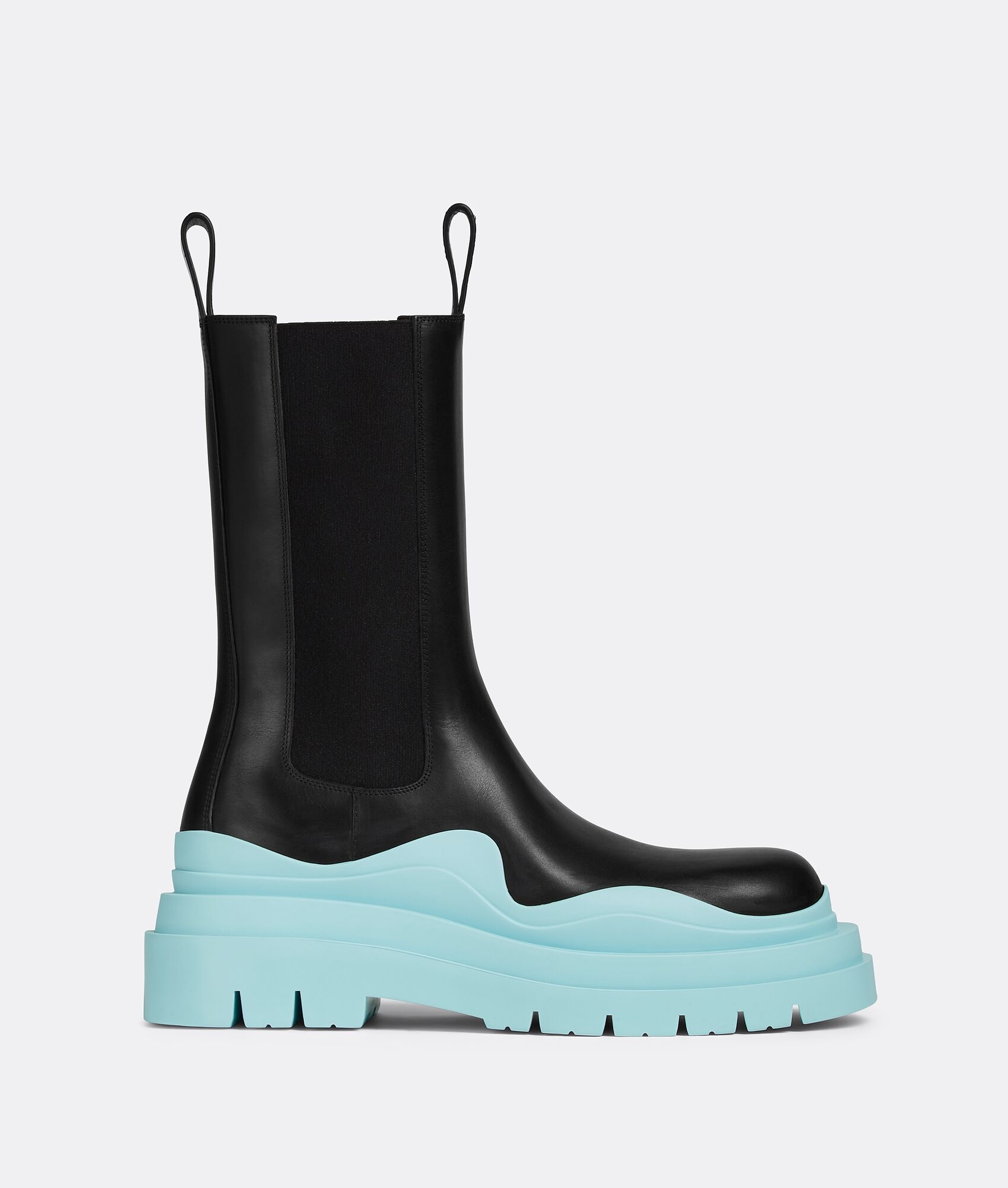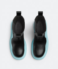 • Vegetally-tanned leather Chelsea boots Material: 100% Calfskin • Lining: Calf leather • Color: Black/Pale Blue • Rubber outsole • Flatform: 5.5 cm I 2" • We recommend purchasing half a size to one size down Made in: Italy