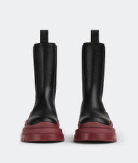 • Vegetable-tanned leather Chelsea boots Material: 100% Calfskin • Lining: Calfskin • Color: Black/Cherry • Rubber outsole • Flatform: 5.5 cm I 2.1" • We recommend to take half a size down Made in: Italy