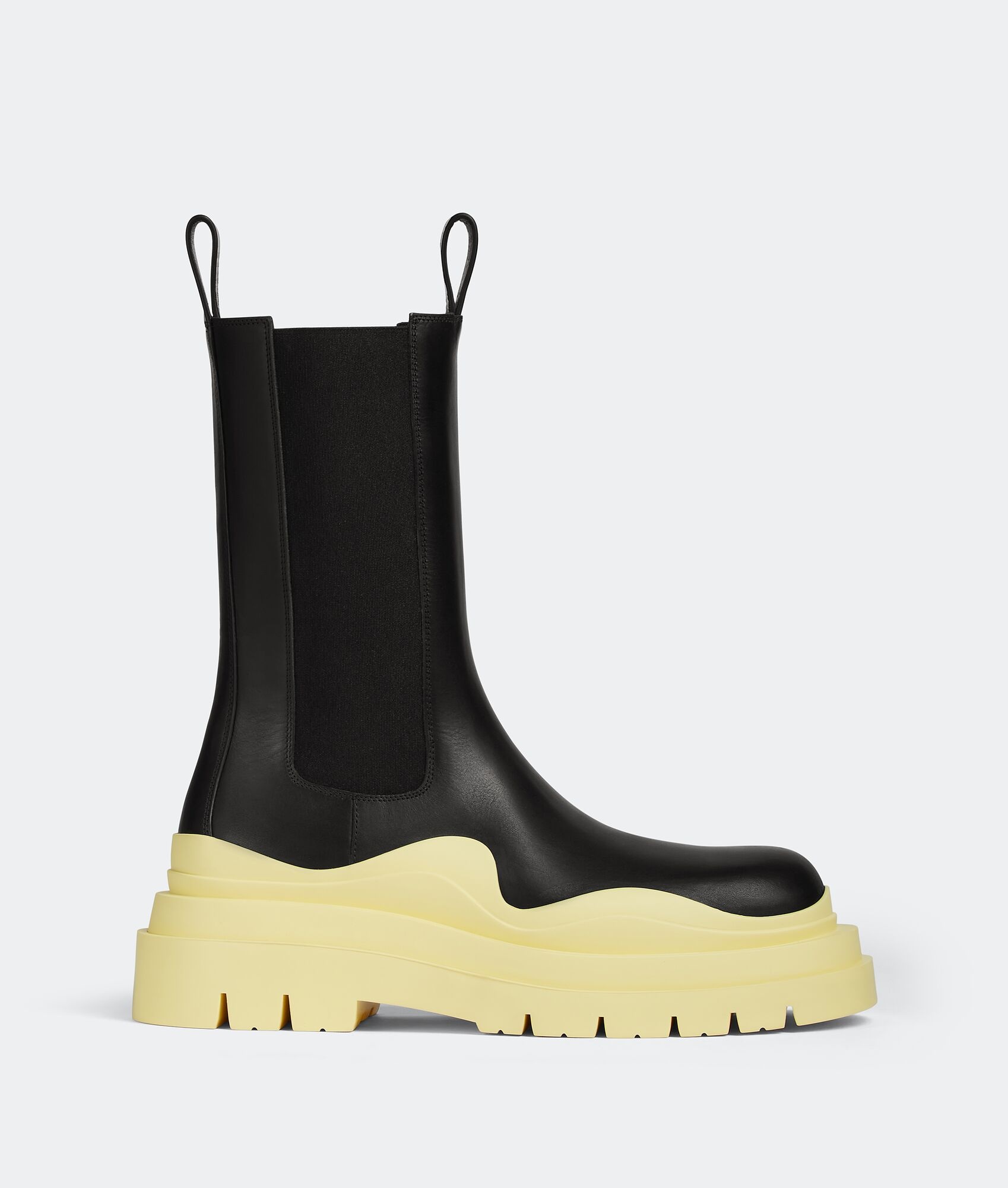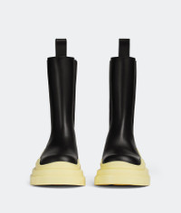 • Vegetally-tanned leather Chelsea boots Material: 100% Calfskin • Lining: Calf leather • Color: Black/Lemonade • Rubber outsole • Flatform: 5.5 cm I 2" • We recommend purchasing half a size to one size down Made in: Italy