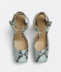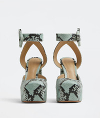 • Faded python print leather pumps • Signature triangle buckle Material: 100% Goatskin • Lining: Kidskin • Color: Dew/Black • Leather outsole • Heel: 14 cm | 5.5" • Platform: 4 cm | 1.6" Made in: italy