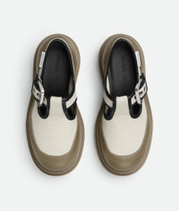 Canvas Mary-Jane shoe with chunky rubber sole. Product Details - Canvas Mary-Jane shoe - Material: Canvas - Lining: Canvas - Color: Natural/Black/Liana - Hardware: Silver finish - Rubber outsole - Flatform: 7 cm | 2.8" - Made in: Italy - Product code: 796500V2GY49248