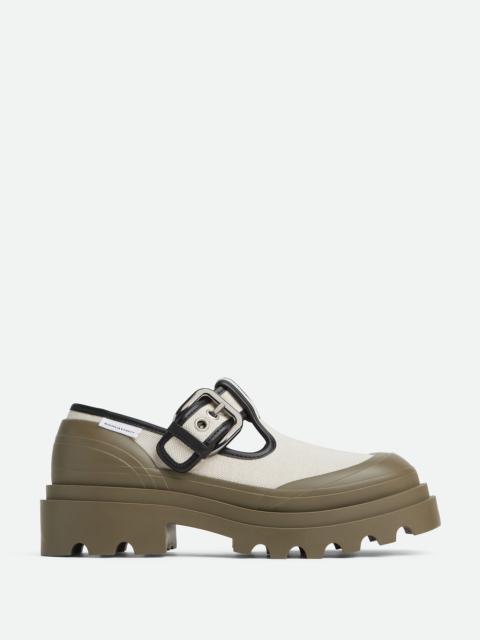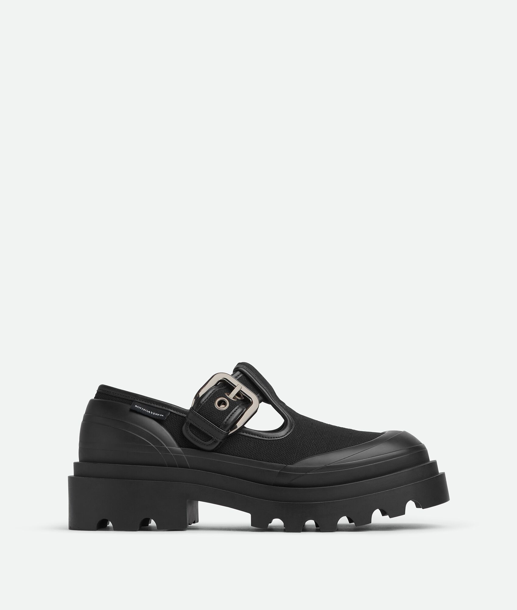 Canvas Mary-Jane shoe with chunky rubber sole. Product Details - Canvas Mary-Jane shoe - Material: Canvas - Lining: Canvas - Color: Black - Hardware: Silver finish - Rubber outsole - Flatform: 7 cm | 2.8" - Made in: Italy - Product code: 796500V2GY41000