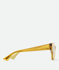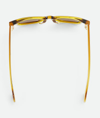 Square sunglasses in recycled acetate with injected acetate temples. Product details • Three-layer temples featuring injected acetate and metal core wire evoking the iconic triangle shape • Bio nylon lenses • BV1276S 004 Material: Acetate • Color: Yellow/Brown Made in: Italy