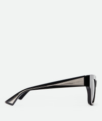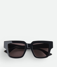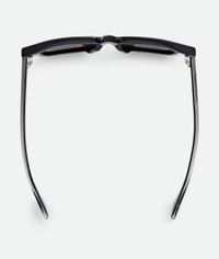 Square sunglasses in recycled acetate with injected acetate temples. Product Details - Three-layer temples featuring injected acetate and metal core wire evoking the iconic triangle shape - Bio nylon lenses - BV1276S 001 - Material: Acetate - Color: Black/Grey - Made in: Italy - Product code: 779428VBL801049