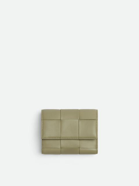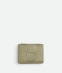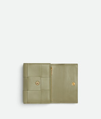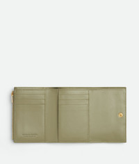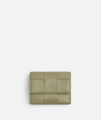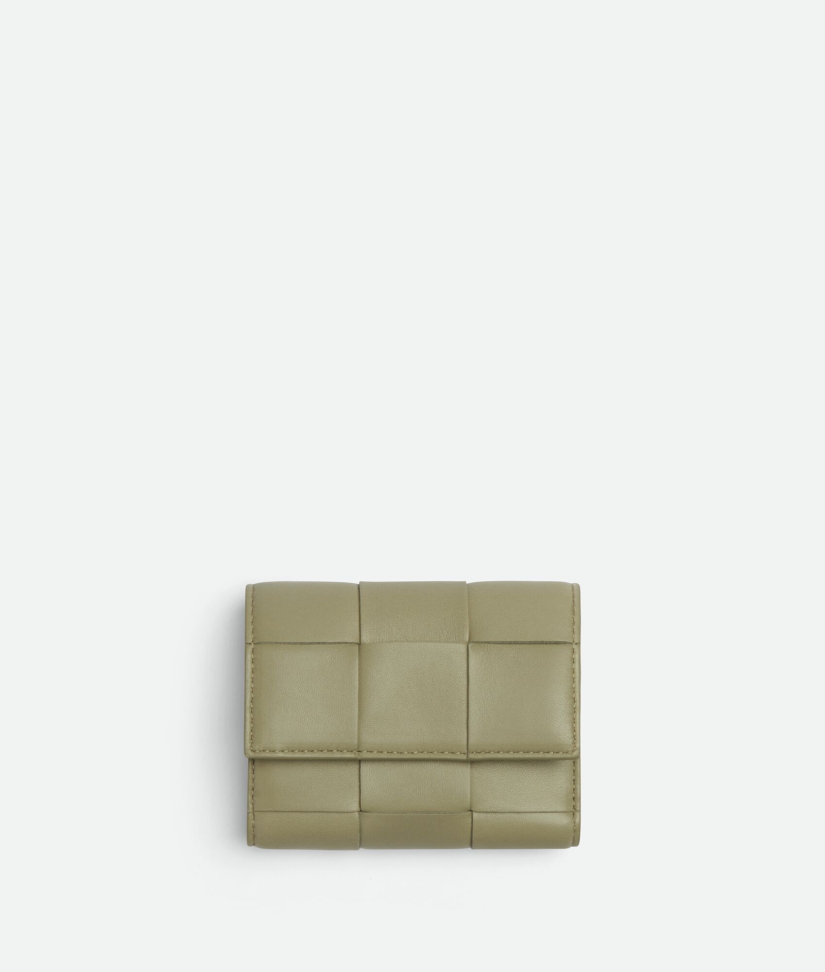 Intreccio leather wallet. Make it unique with a handmade customization by our Product details • Intreccio leather wallet • Six card slots, one bill compartment, two additional pockets, one zipped coin purse • Press stud closure Material: 100% Lambskin • Lining: Calfskin • Color: Travertine • Hardware: Gold finish • Height: 9 cm • Width: 11.5 cm • Depth: 2 cm Made in: Italy