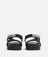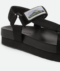 Technical nylon slingback platform sandal with ergonomic leather insole. Product details • Technical nylon slingback platform sandal • Ergonomic leather insole • Special label on the velcro closure Material: Nylon • Unlined • Color: Black • Rubber outsole • Flatform: 5 cm | 2" Made in: Italy