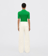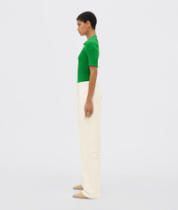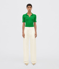 • Compact cotton wide leg trousers • Zip, button, and hook closure Material: 100% Cotton • Color: String Made in: Italy