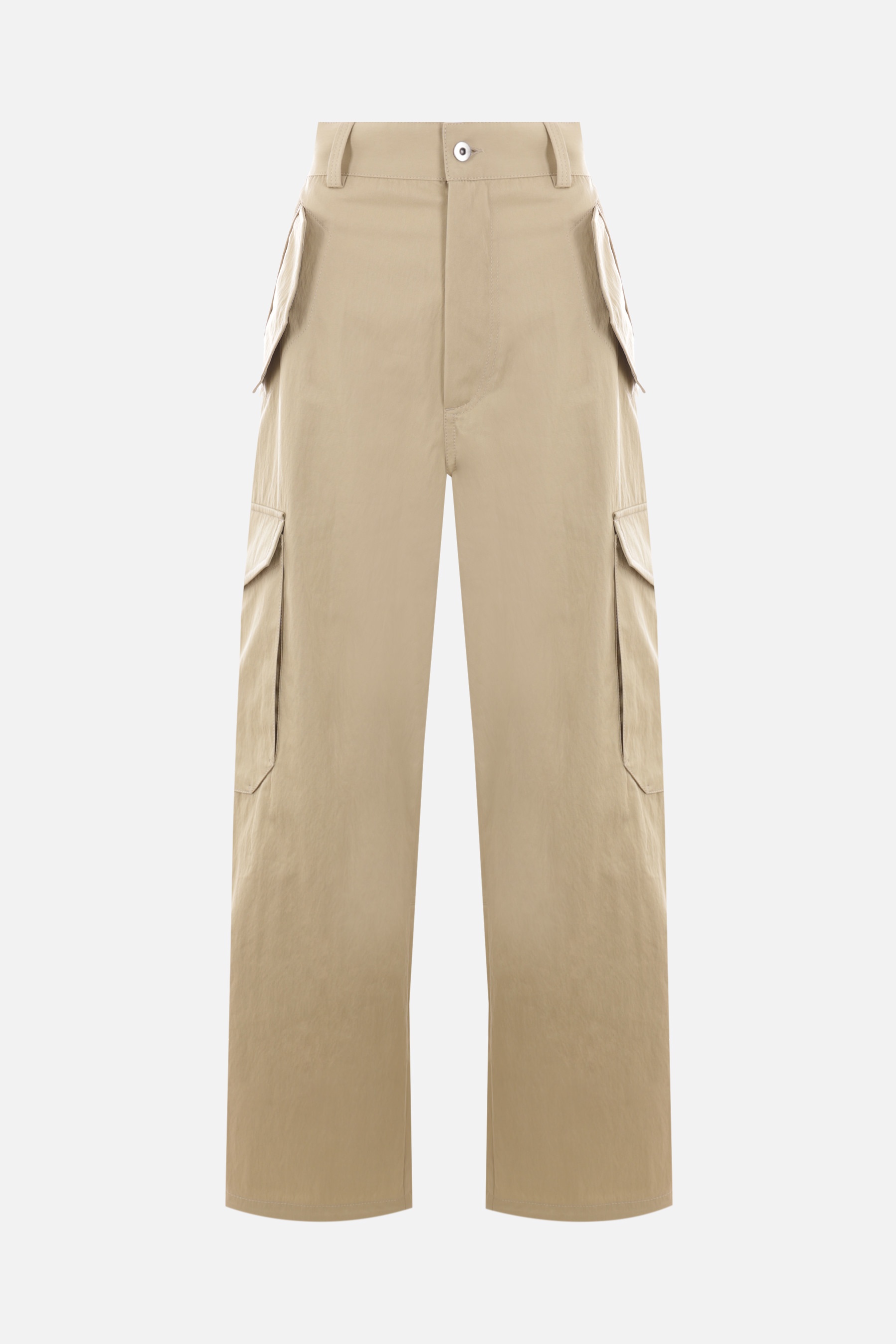 Bottega Veneta's cargo pants crafted in beige technical cotton twill. Featuring metal button / zip closure, belt loops, multiple pockets and drawstring at the hem. DETAILS - color Beige - 77% cotton, 23% polyamide - made in Italy SIZE & FIT - Size IT; the size shown for this item is the size indicated by the designer on the label - Medium Waist / Regular Fit / Wide Leg - Hem 30 cm - True to size - Model wears size 40. Model measurements: shoulder 38 cm, chest 81 cm, waist 62 cm, hips 90 cm, height 1.77 m product code: 796590V1X509514
