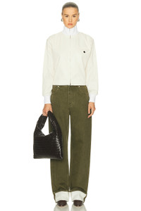 Details - Self 1 & Lining: 100% cotton - Self 2: 82% wool, 15% polyamide, 3% elastane - Dry clean only - Hidden front zipper closure - Breast seam pocket with button detail - Stand collar styling - Ripstop fabric with ribbed knit fabric - Made in Italy - Our Style No. BOTT-WO72 - Manufacturer Style No. 838232-V4CS0-3043