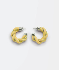 • Silver and leather twisted hoop earrings Material: Sterling Silver, Lambskin • Color: Sherbert • Length: 4 cm Made in: italy