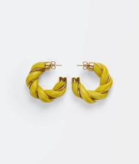 • 18-karat gold-plated silver and leather twisted hoop earrings Material: Sterling Silver, Lambskin • Color: Mirabelle • Diameter: 4 cm Made in: italy