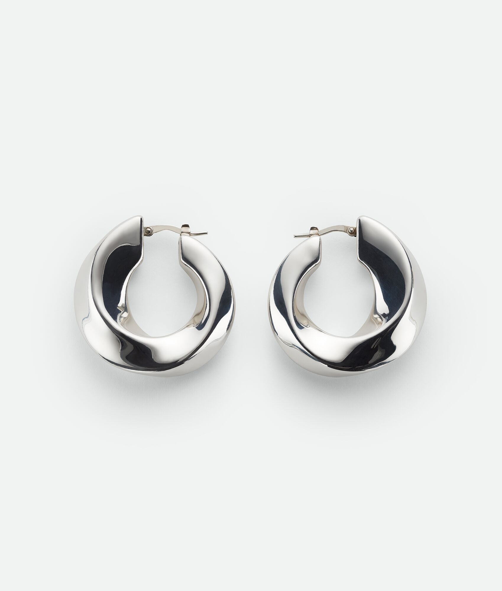 Hoop earrings with twisted silhouette crafted from an electroforming technique in Product details • Sterling silver earrings • Hinged closure • External diameter: 34 mm | 1.33" • Width: maximum 9.6 mm | 0.4" Material: 925/1000 silver • Color: Silver • Due to hygiene-related reasons, this piece may not be returned Made in: Italy