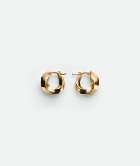 Hoop earrings with twisted silhouette crafted in 18k gold-finished sterling silver. Product details • 18k gold-finish sterling silver earrings • Hinged closure • External diameter: 17 mm | 0.66" • Width: maximum 4.8 mm | 0.4" Material: 925/1000 silver • Color: Yellow Gold • Due to hygiene-related reasons, this piece may not be returned Made in: Italy
