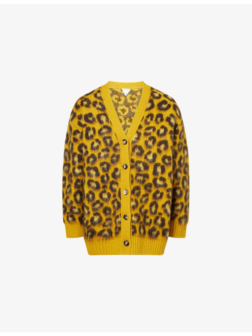 PRODUCT DETAILS - Bottega Veneta wool-blend cardigan - 48% wool, 35% mohair wool, 17% polyamide; embellishments 98% wool, 1% elastane, 1% polyamide - Exposed button fastening at front - Relaxed fit, V-neck, long sleeves, all-over leopard print, all-over knitted, brushed, ribbed trims - Dry clean - Made in Italy - True to size - Size small: length 27in / 69cm - Model is 5ft 10in/1.78m and wears a size small - Midweight, stretchy Ref: R04508485