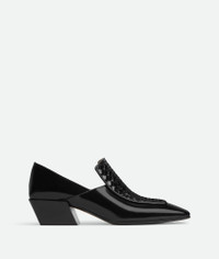 Loafer in brushed leather with Intrecciato detail, squared toe, and sculptural block Product Details - Brushed leather loafer - Intrecciato detail - Material: Calfskin - Lining: Calfskin - Color: Black - Leather outsole - Heel: 4 cm | 1.6" - Made in: Italy - Product code: 827499V4BO21000