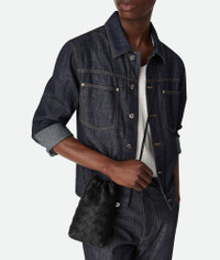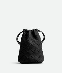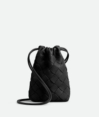 Dustbag in grained Intrecciato calf leather with drawstring closure and loop attachment Product Details - Grained Intrecciato calf leather dustbag with drawstring closure and loop attachment for cross-body carry - Single main compartment - Drawstring closure with leather loop attachment for cross-body carry - Material: Calfskin - Lining: Nylon - Color: Black - Height: 18.5 cm | 7.3" - Width: 12 cm | 4.7" - Depth: 4.5 cm | 1.8" - Strap Drop: 55 cm | 21.7" - Made in: Italy - Product code: 838786V5I538803